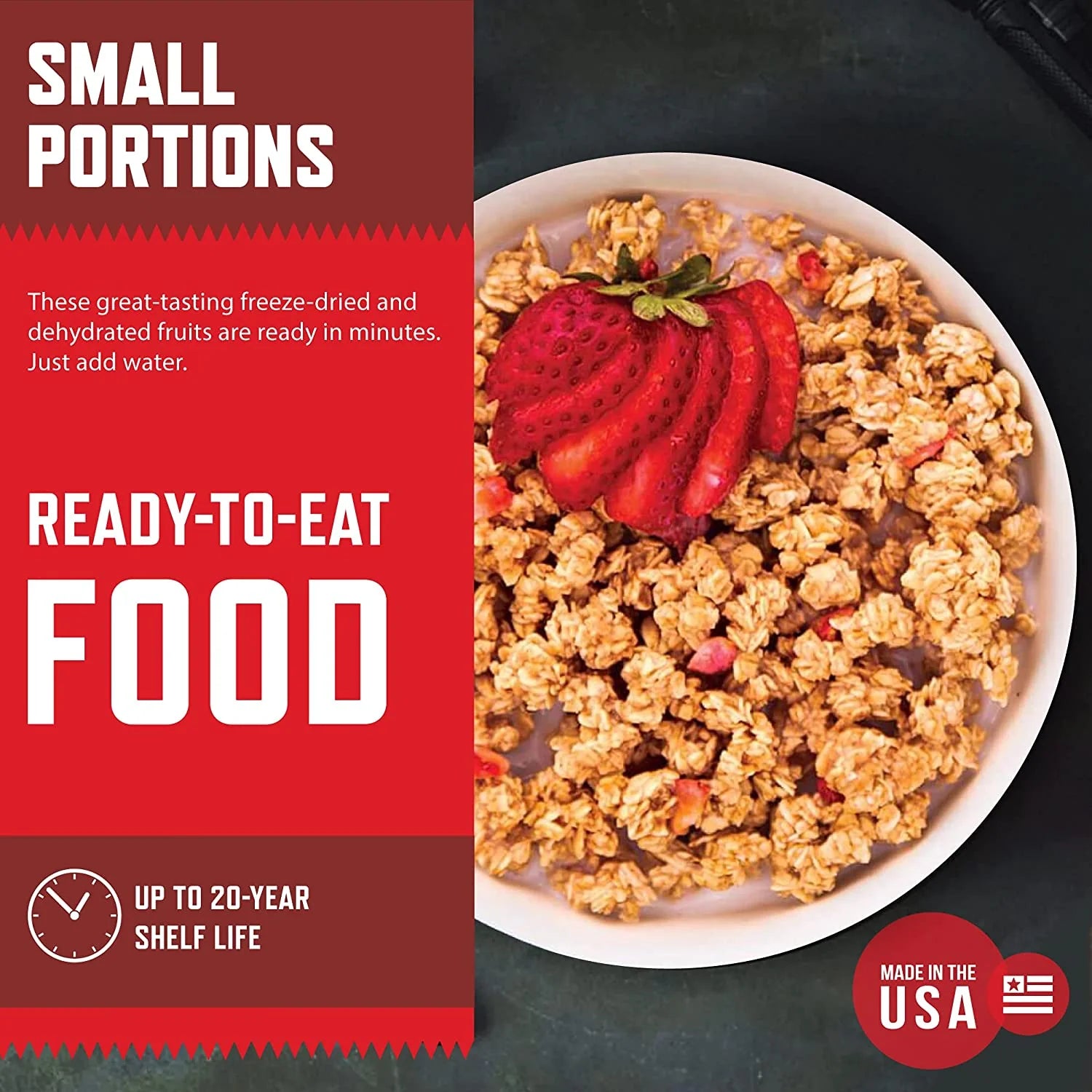 - Het voedsel is veilig geseald in Mylar zakken.