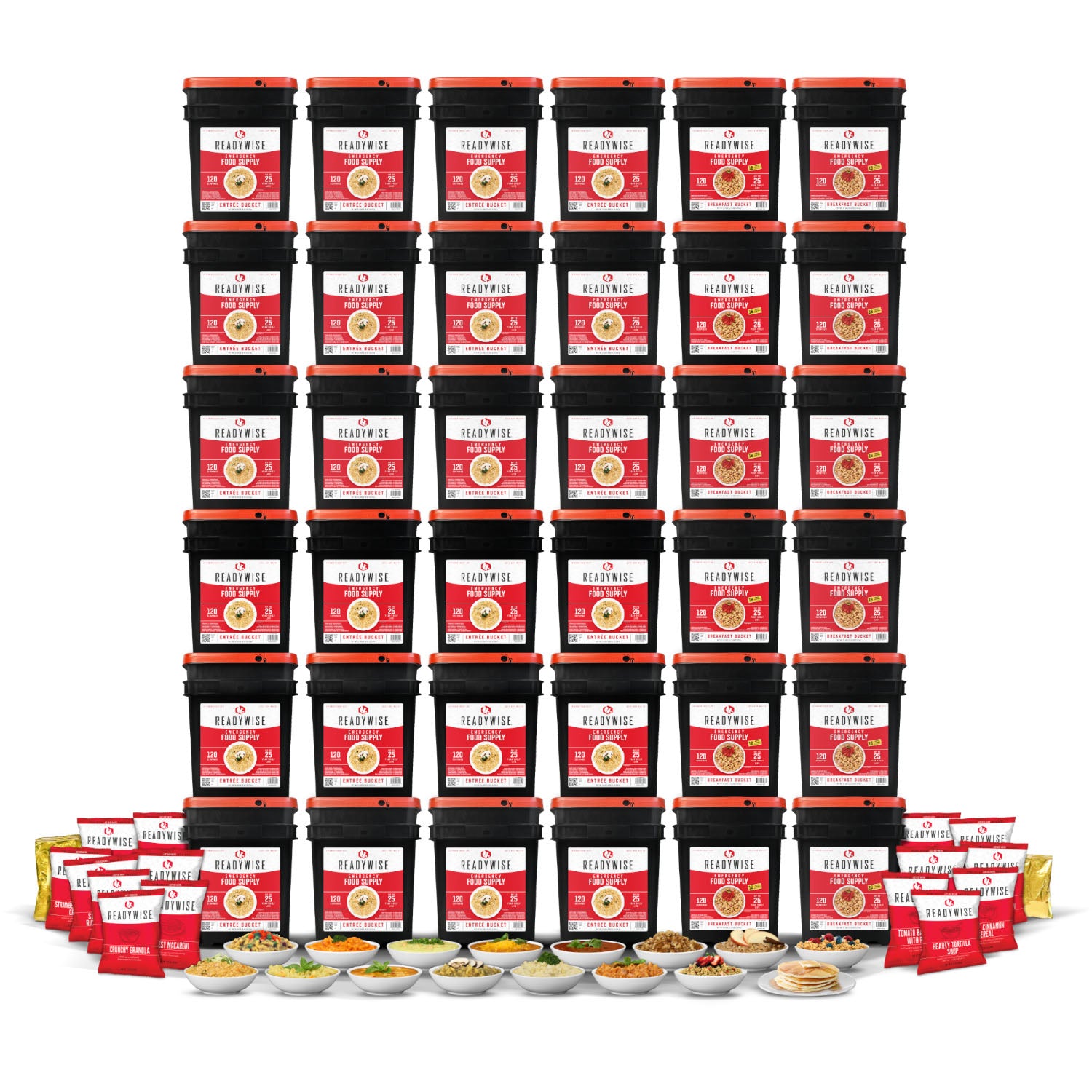 Ce package comprend 24 seaux repas de 120 portions et 12 seaux petits-déjeuners de 120 portions. Tous les repas sont conditionnés dans des sachets de 4 portions et sont livrés dans des seaux robustes faciles à stocker et à emporter en cas de besoin.